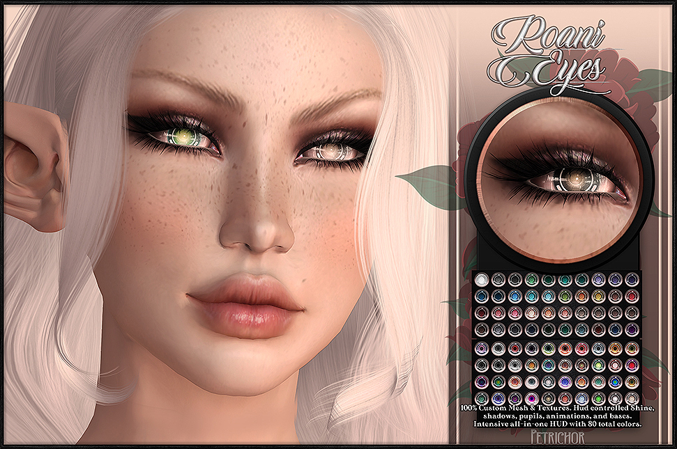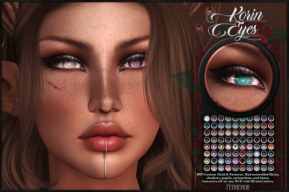 ❤ ———- Eyes! These are on an ALL NEW gorgeous, ultra customizable EYE SYSTEM now. This is how eyes will be done from now on for you- with 15 customizable eye shine layers, animation layers, shadow layers, pupil layers, and two HUDS- 40 COLOR and 40 FADE packs. The most customization ever! The HUD has a glow, alpha, shine, evironment, tinter, and color picker for EVERY layer and you can adjust L and R eyes separately. So excited to finally get these to you after 6 months of work! I hope you enjoy it as much as I did making it for you. ❤ Come check it all out at Engine room! http://maps.secondlife.com/secondlife/Syndicate/192/131/37