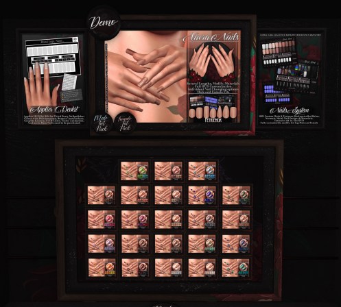 Vaera Demo: https://marketplace.secondlife.com/p/P-Vaera-Nails-Demo-Unpacker/21498524