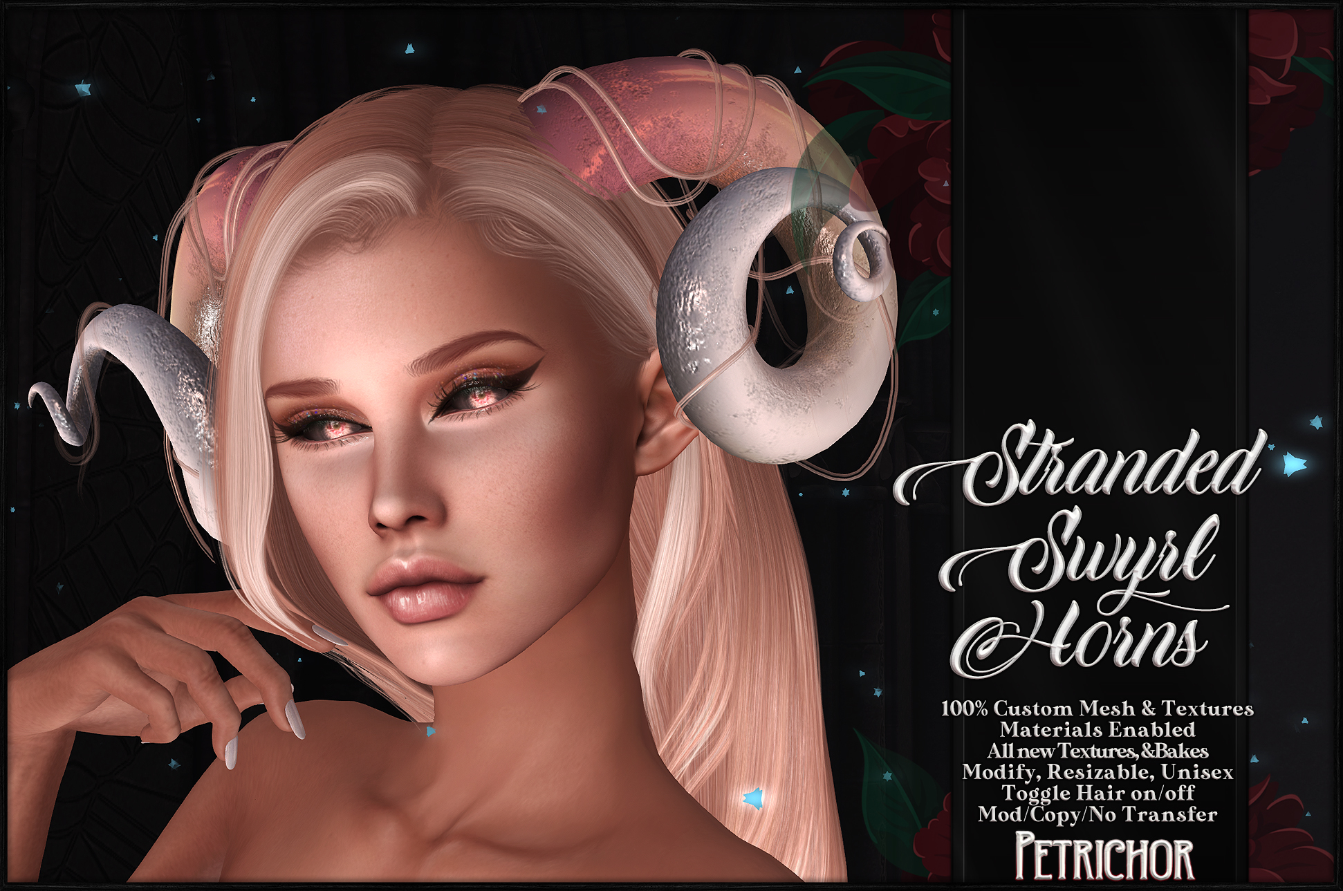 ★ Petrichor was founded in 2006 and we are happy to still be making pretties for your beautiful faces. Gorgeous 100% custom mesh & lush textures, original, handpainted Fantasy skins, items, accessories, decor, and more.