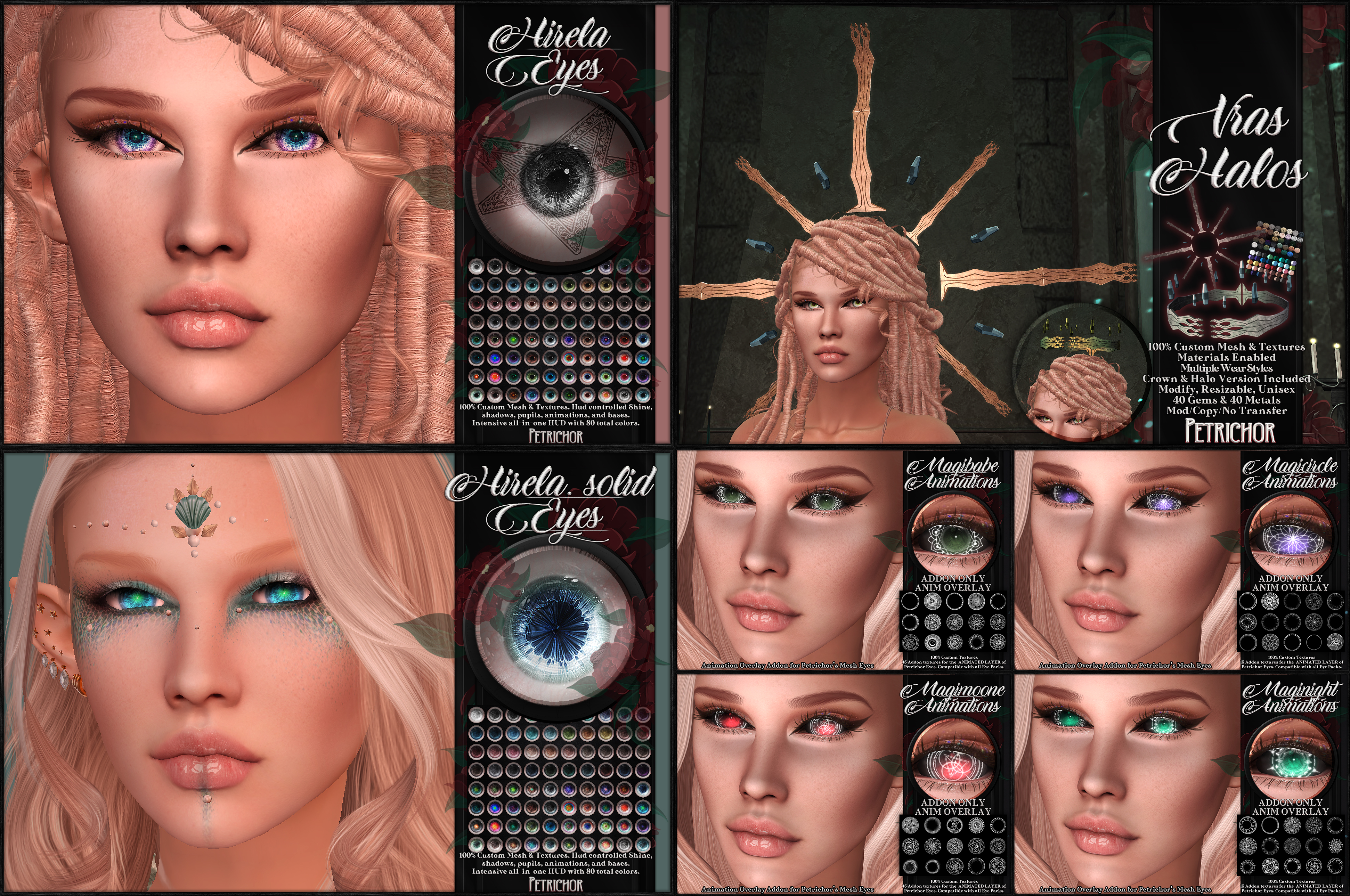 ★ Petrichor was founded in 2006 and we are happy to still be making pretties for your beautiful faces. Gorgeous 100% custom mesh & lush textures, original, handpainted Fantasy skins, items, accessories, decor, and more.