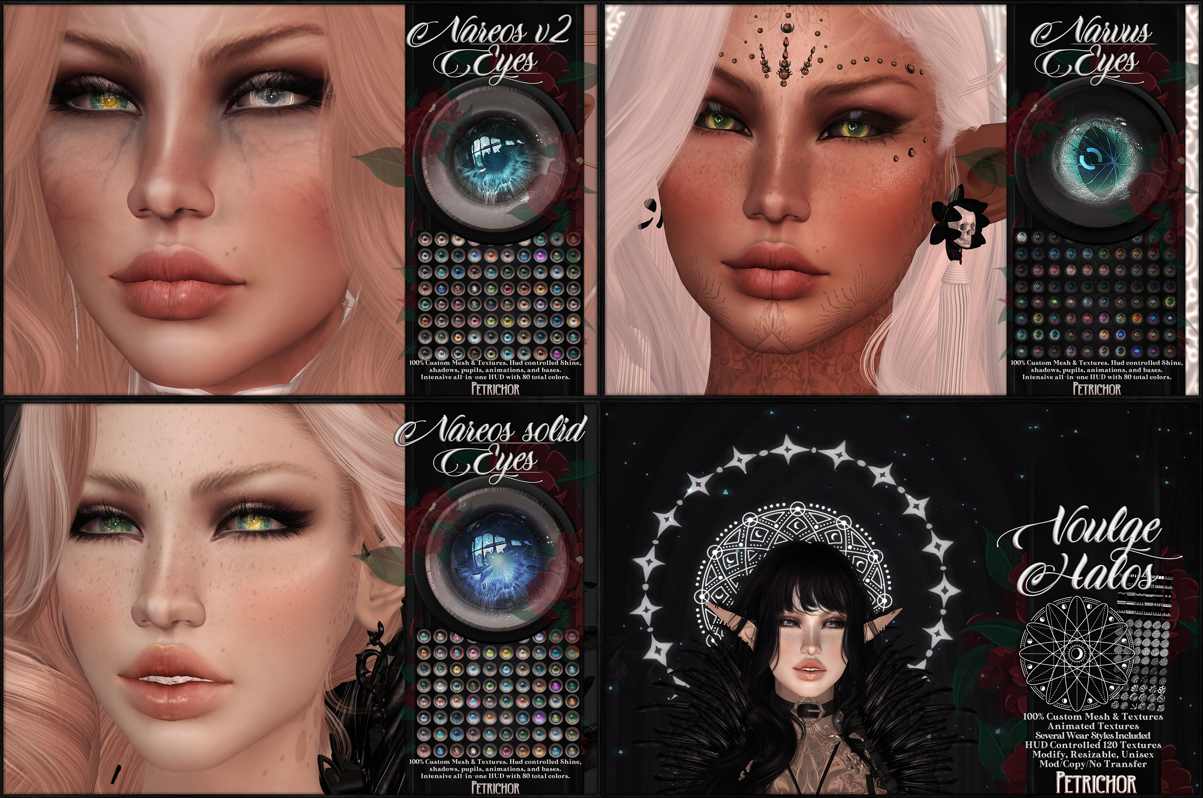 ★ Petrichor was founded in 2006 and we are happy to still be making pretties for your beautiful faces. Gorgeous 100% custom mesh & lush textures, original, handpainted Fantasy skins, items, accessories, decor, and more.