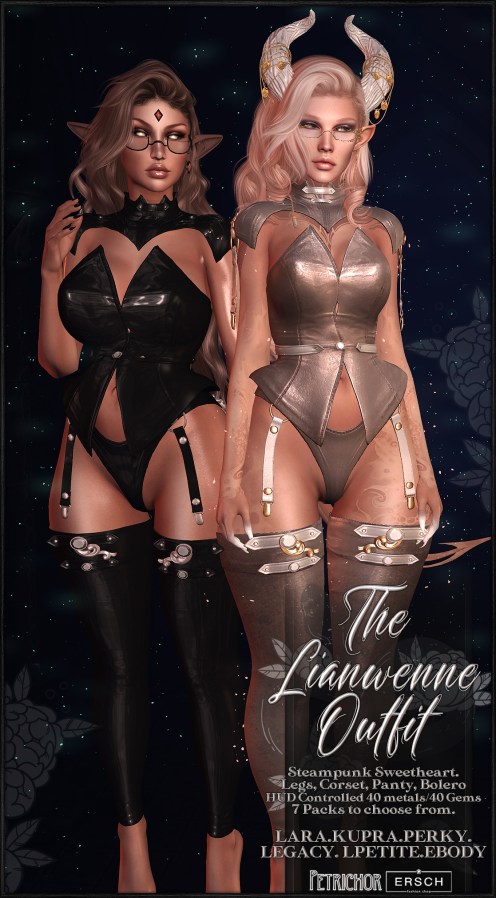 For this release we’re bringing in another gorgeous collaboration with ERSCH! The Lianwenne set! This little decadent number will have you feeling like the sexiest bae this side of SL! Crush the weak beneath your feet.