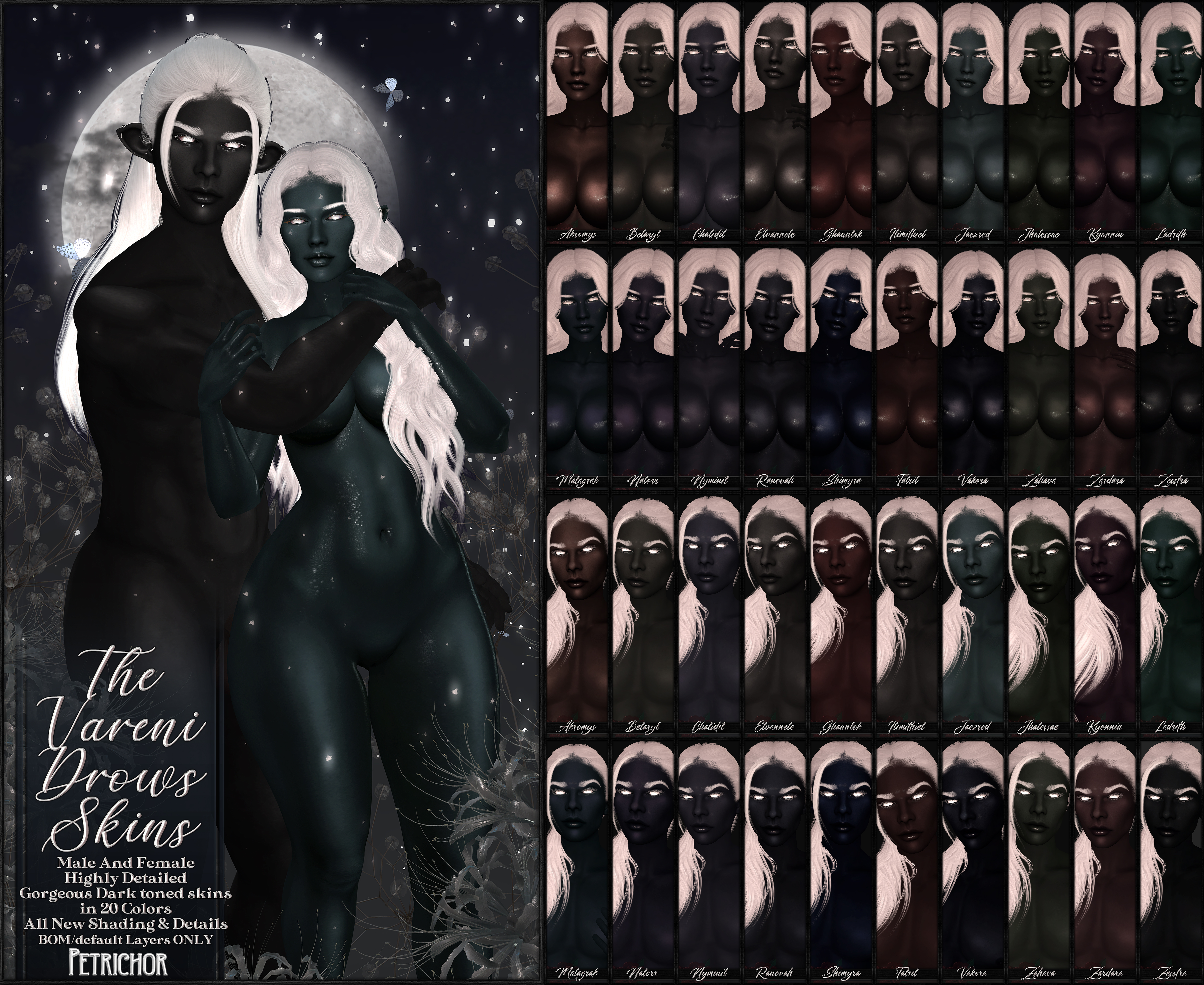★ Petrichor was founded in 2006 and we are happy to still be making pretties for your beautiful faces. Gorgeous 100% custom mesh & lush textures, original, handpainted Fantasy skins, items, accessories, decor, and more.