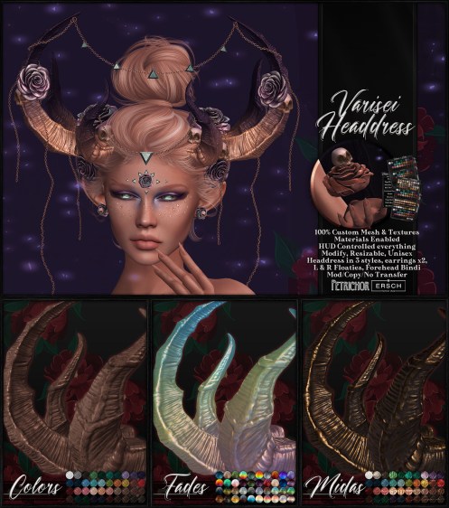 ★ Petrichor was founded in 2006 and we are happy to still be making pretties for your beautiful faces. Gorgeous 100% custom mesh & lush textures, original, handpainted Fantasy skins, items, accessories, decor, and more.